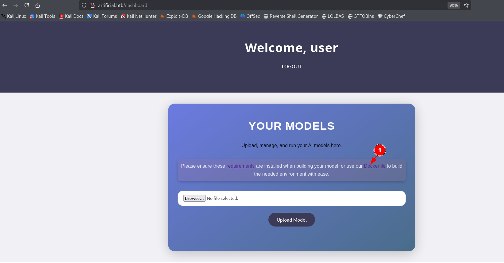 I registered a user account and logged in. The Dashboard allowed me to upload an AI model. It recommended using a Dockerfile to build the model and then upload it as an h5 TensorFlow model.