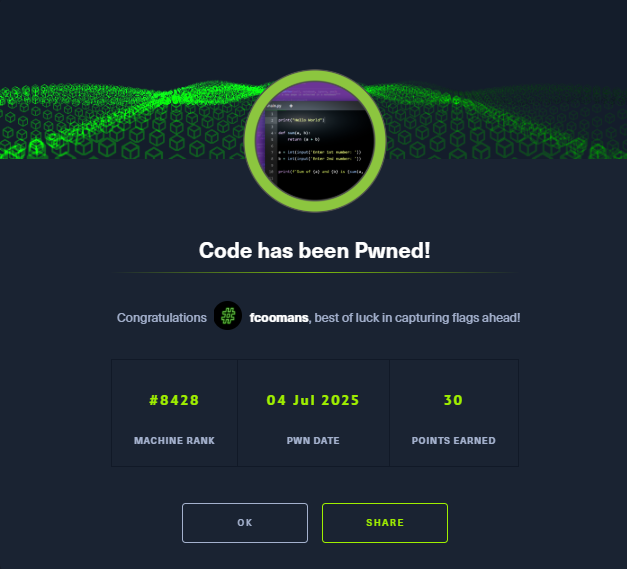 fcoomans@kali:~/htb/code$ grep code.htb /etc/hosts
