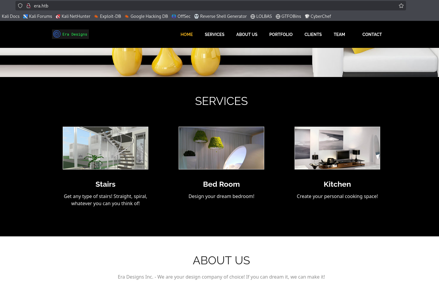 The http://era.htb website is opened. Enumeration of the site doesn’t show anything interesting.