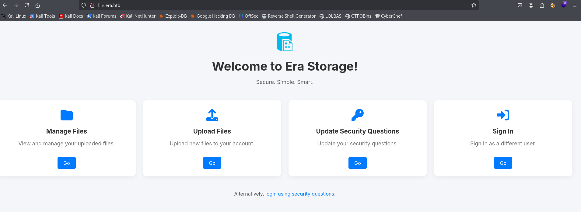 http://file.era.htb is opened. Now this looks very interesting. It’s a file storage system.