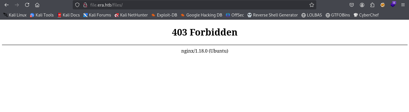 Fuzzing for subdomains reveals a file.era.htb virtual host website.