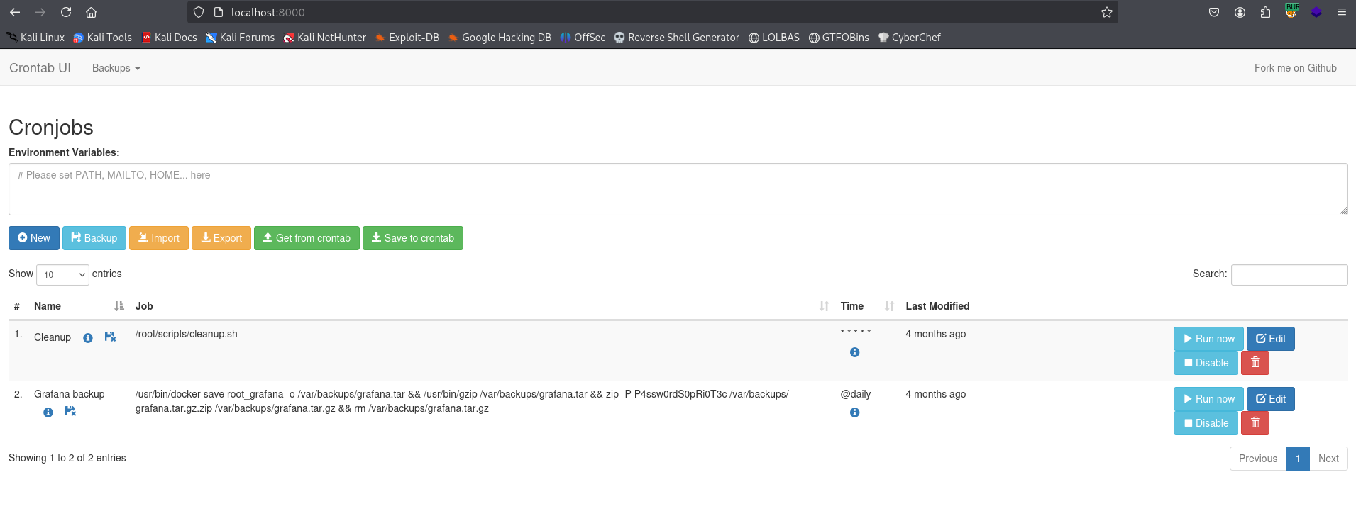 I start with access to a hidden Grafana dashboard vulnerable to CVE-2024-9264, which grants a root shellβbut only within a Docker container. From there, I pivot using leaked credentials from environment variables, SSH into the host, and uncover a cron job management UI quietly running on localhost.